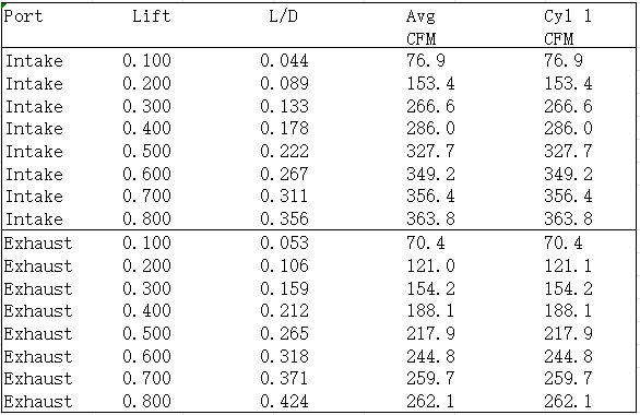 Model NumberIntake Port Volume Exhaust Port VolumeCombustion Chamber SizeValve Angle